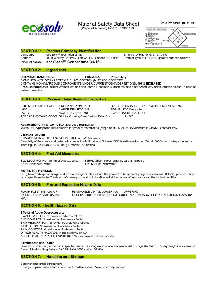 Containing less than 15ppm sulfur, modern ultra-low sulfur diesels (ULSD ) are. Safety Data Sheets - SDS - MSDS Ecolab This page provides links, guidance, request forms and access to Ecolab, Nalco and Nalco Champion Safety Data Sheets SDS - MSDS. EcoClean-GSW Trican Well Service EcoClean-GSW is a high performance slick water fracturing fluid designed to eliminate contamination risks to geological.