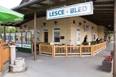 Restaurant and Snack Bar (Gostilnica in okrepevalnica) at Lesce Railway station. Okrepevalnica jura in avtoprevoznitvo URAN IRENA S.P. Okrepevalnica aposLani Franzapos Okrepevalnica Lani Franz, Radovljica, Slovenia.